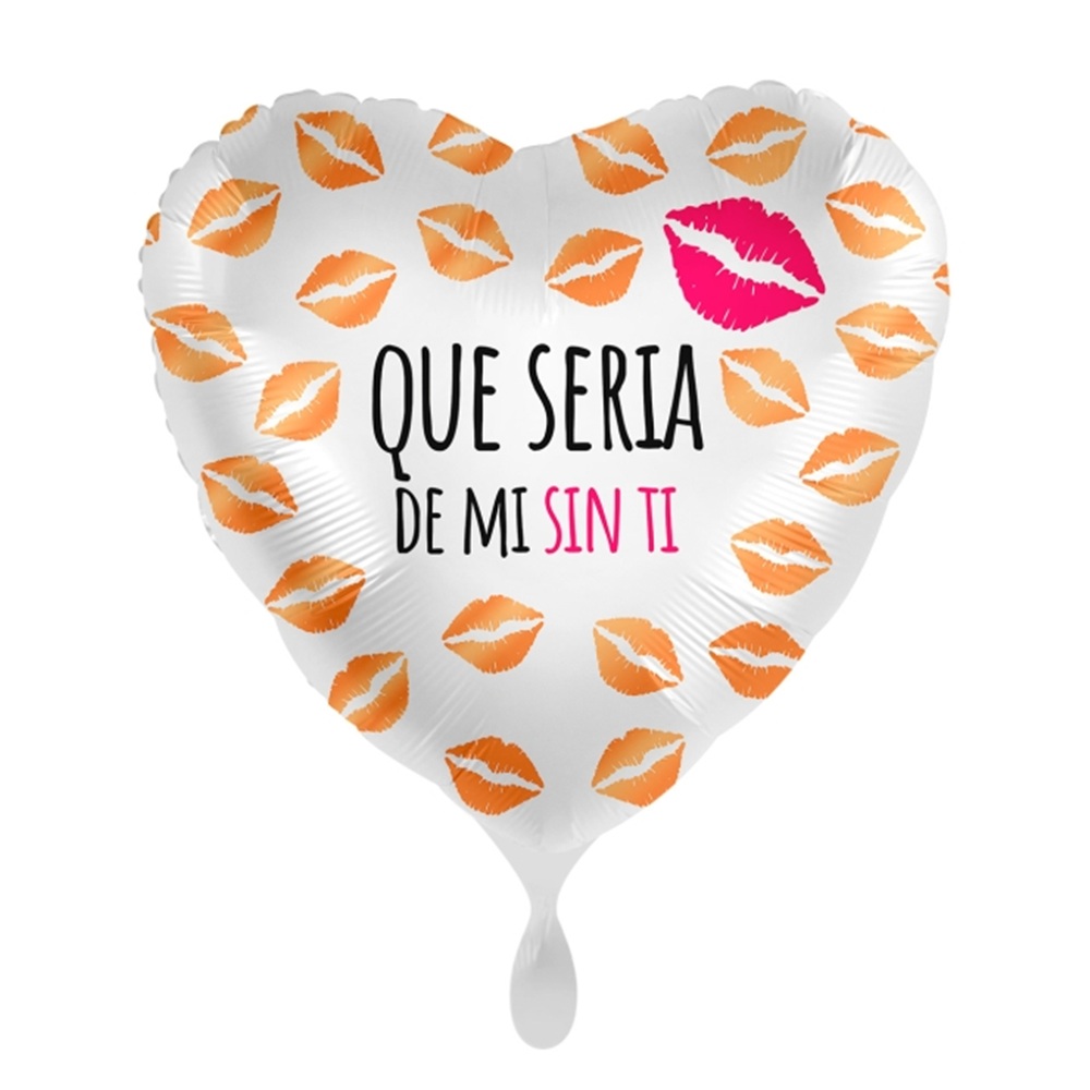 Globo metalizado con forma de corazón, impreso con la frase "Que Sería de Mi sin Ti"